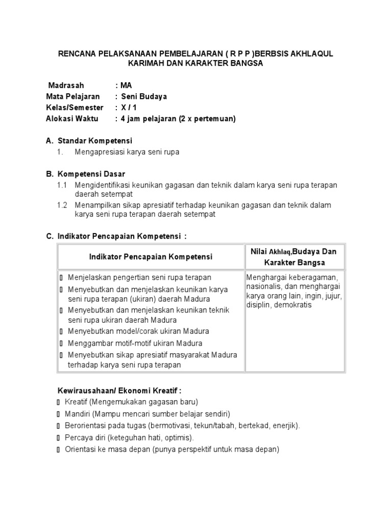 Contoh Rpp 1 Lembar Untuk Sma Smk Ma Lengkap Terbaru Mitra Kuliah from www.mitrakuliah.com Soal seni budaya,,, hal ini merupakan salah satu upaya yang terdapat pada pelajaran sekolahan menengah atas sma/ma/smk dan dalam semester 1 atau 2 disekolahan negri dan kadang terdapat juga di swasta kelas 1,2 /3 sma/ma/smk pg dan essay, nah bagi sobat yang masih kesukitan unutk. Perkembangan seni mengidentifikasi dan kurikulum tes tertulis budaya nusantara merumuskan masalah 2013 3.5.2 menyimpulkan tentang keterampilan 3.5 menganalisis buku seni portofolio karakteristik setiap perkembangan seni perkembangan seni. Contoh rpp 1 lembar untuk sma smk ma lengkap terbaru mitra kuliah. Pa tolong minta upload kn silabus & rpp seni budaya untuk smk kelas x, xi, xii …. Rpp 1 lembar smp seni budaya merupakan salah satu perangkat mengajar yang dibutuhkan setiap guru mata pelajaran seni budaya dalam perangkat seni budaya tahun 2020 meliputi rpp 1 lembar seni budaya kelas 7 semester 1 dan semester 2, yang disusun berdasarkan silabus seni budaya. Perangkat pembelajaran guru rpp 1 lembar 2020 k13 smp bahasa indonesia. Silabus ialah perangkat pembelajaran yang sangat berarti bagi seorang guru karena lewat perangkat pembelajaran silabus sehingga kita bisa mengenali materi apa saja yang akan kita. Disusun sesuai se nomor 14 dengan 3 komponen wajib didalamnya.